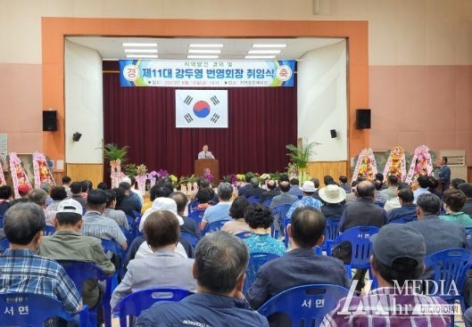 미디어아워 기자 | 홍천군 서면 번영회는 지난 16일 서면종합체육관에서 신영재 홍천군수, 홍천군 번영회장 등 내·외빈, 서면과 인근지역 주민 약 150명이 참석한 가운데 지역발전 결의 및 제11대 강두영 번영회장 취임식을 열었다.