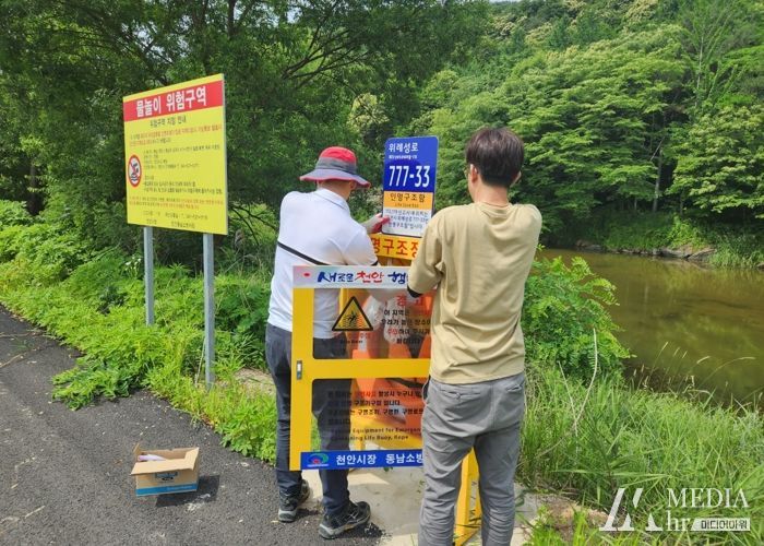 시는 지난 4월부터 물놀이 집중지역인 광덕면 풍서천 일원과 북면 병천천 일원 안전시설물에 대한 일제 점검을 실시해 낡은 안전시설물을 정비하고 인명구조함과 안전표지판을 8개소에 신규로 설치했다.