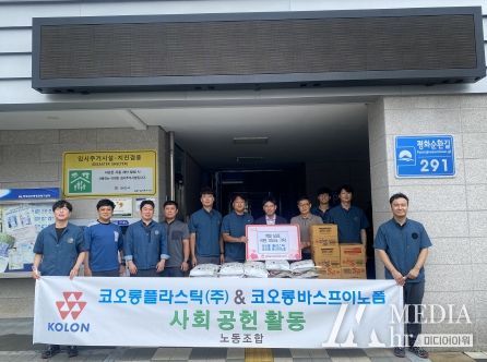 미디어아워 기자 | 코오롱 플라스틱과 코오롱 바스프이노폼 노동조합에서는 26일 관내 저소득층과 소외계층을 위한 후원 물품으로 백미(10kg) 50포와 라면 10박스를 평화남산동 행정복지센터에 기탁했다.