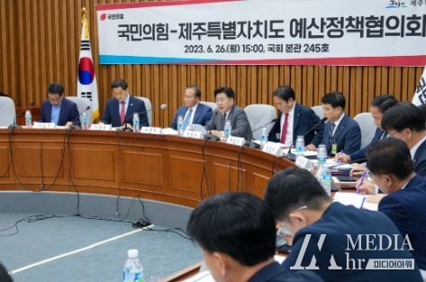 미디어아워 기자 | 오영훈 제주특별자치도지사가 26일 국회에서 열린 ‘제주도-국민의힘 예산정책협의회’에서 제주지역 민생현안 해결을 위한 국비 확보와 제도개선에 초당적 협력을 요청했다.