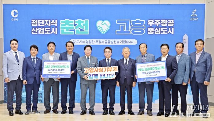 군에 따르면 지난 26일 고흥군청 우주홀에서 개최된 강원도 춘천시 대표단 방문 환영식에서 고흥류씨 고흥종친회와 고흥류씨 부학공파 종중 및 청장년회 회원들이 양 도시의 상생발전을 응원하는 마음을 담아 고향사랑기부금을 상호 기탁했다.