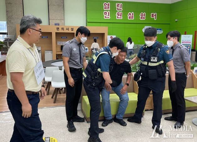 이번 모의훈련은 악성 또는 특이민원 발생 시 시민과 민원담당 공무원의 안전을 확보하고 응급처치교육을 실시함으로써 비상 대응 역량을 강화하기 위함이다.