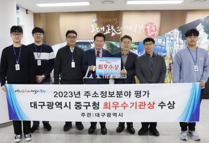 미디어아워 임다연 기자 | 대구 중구는 대구시 주관 ‘2023년 주소정보 업무 분야 종합평가’에서 최우수 기관으로 선정됐다.