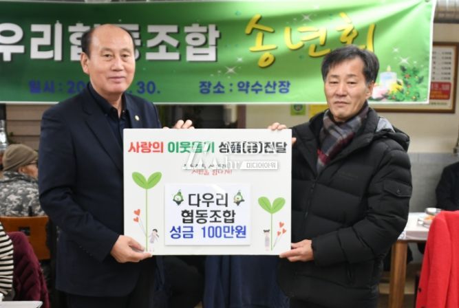 미디어아워 임다연 기자 | 다우리 협동조합은 지난 11월 30일 관내 저소득 가정을 위한 성금 100만원을 기탁했다.