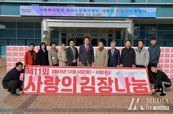 미디어아워 임다연 기자 | 사회복지법인 빛과소금복지재단은 지난 5일, 김장김치 5kg 500상자(환가액 1,000만 원)를 부산 동구에 전달했다.