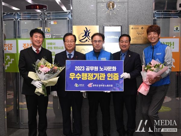 미디어아워 임다연 기자 | 완주군이 건전한 공무원 노사문화 정착에 대한 노력을 인정받아 ‘공무원 노사문화 우수행정기관’ 인증패를 수여 받았다.