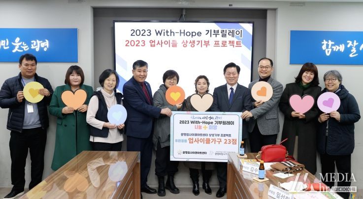 미디어아워 임다연 기자 | 광명시 광명업사이클아트센터는 8일 시청 영상회의실에서 ‘업사이클 상생기부 프로젝트’의 하나로 불용가구로 만든 업사이클 가구 23점을 장애인, 어린이를 위한 공간 총 19곳에 전달하는 기부식을 진행했다.