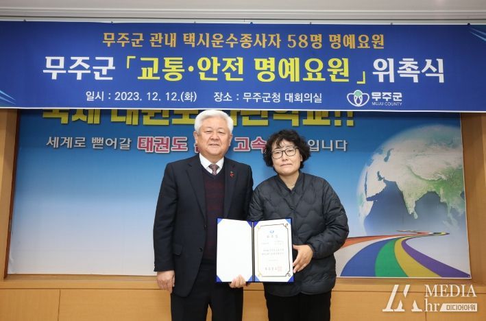 미디어아워 임다연 기자 | 무주군은 지난 12일 관내 택시 운수종사자 58명을 “무주군 생활안전 명예 요원(이하 생활안전 명예 요원)”으로 위촉했다고 밝혔다.