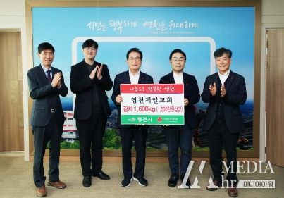 미디어아워 임다연 기자 | 영천제일교회는 13일 저소득층 및 취약계층 대상자를 위해 사랑의 김장 김치 200박스(1600kg)를 영천시에 기탁했다.