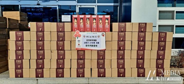 미디어아워 임다연 기자 | 한국석유공사(사장 김동섭)가 12월 13일 오전 10시 중구청을 방문해 취약계층을 위한 1,000만 원 상당의 가정용 소화기 270개를 전달했다.