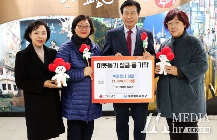 미디어아워 임다연 기자 | 에코맘홍보단은 14일 대구 중구청을 방문해 어려운 이웃을 위한 연말 이웃돕기 성금으로 100만원을 기탁했다.