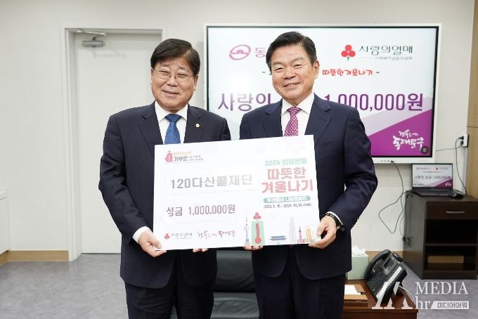 미디어아워 임다연 기자 | 동대문구는 15일 오전 120다산콜재단이 연말을 맞아 동대문구청을 방문해 따뜻한겨울나기 사업 성금 100만 원을 기탁했다고 밝혔다.