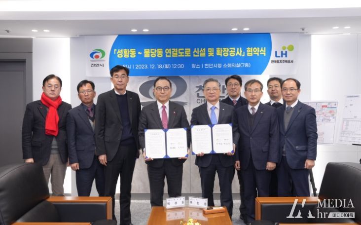 시는 18일 박상돈 천안시장, 이한준 한국토지주택공사 사장 등 양 기관의 대표가 참석한 가운데 ‘성황동부터 불당동 연결도로 신설 및 확장 사업’을 위한 기본협약을 체결했다.