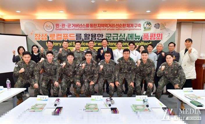미디어아워 임다연 기자 | 장성군이 백종원 대표의 ㈜더본코리아와 ‘상무대 지역상생급식 품평회’를 개최했다. 김한종 장성군수, 상무대 학교장, 급양 관계자, 지역 내 청년 셰프 등 60여 명이 참석했다.