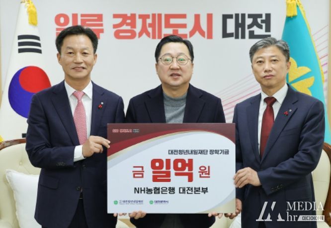 미디어아워 임다연 기자 | 재단법인 대전청년내일재단은 20일 대전시청에서 NH농협은행 대전본부로부터 1억 원의 장학기금을 기탁받았다.