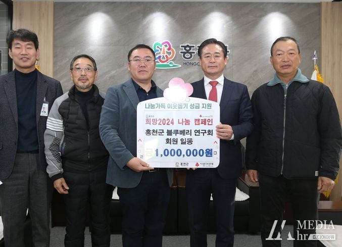 미디어아워 임다연 기자 | 홍천군 블루베리연구회는 12월 20일 홍천군청을 방문하여 희망2024 나눔 캠페인에 성금 100만원을 기탁했다.