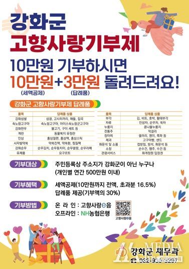 미디어아워 임다연 기자 | 강화군은 21일, 고향사랑기부제 시행 1주년을 앞두고 기부금 목표액을 초과 달성했다고 밝혔다.