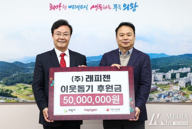 미디어아워 임다연 기자 | 의왕시는 20일 체외진단 전문기업 ㈜래피젠(대표 박재구)에서 어려운 이웃을 위한 성금 5000만원을 기부했다고 밝혔다.