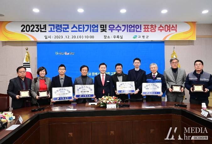 미디어아워 임다연 기자 | 고령군(군수 이남철)은 ‘2023년 고령군 스타기업 및 우수기업인’ 8개 업체를 선정하고, 20일 군청 우륵실에서 수여식을 가졌다.