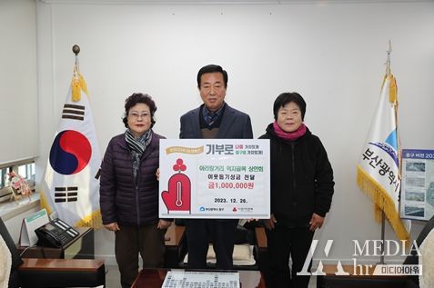미디어아워 임다연 기자 | 아리랑거리 먹자골목 상인회에서는 26일 부산 중구를 방문하여 상인회 회원들이 정성들여 모은 이웃돕기 성금 100만 원을 기탁했다.