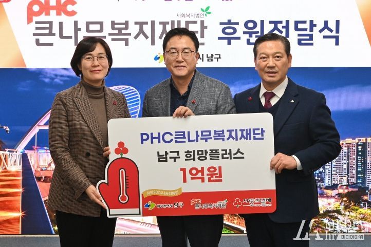 미디어아워 임다연 기자 | 대구광역시 남구청은 지난 22일, PHC 큰나무복지재단(이사장: 김상태)에서 어렵게 생활하고 있는 취약계층을 위해 성금 1억 원을 기탁했다고 27일 밝혔다.
