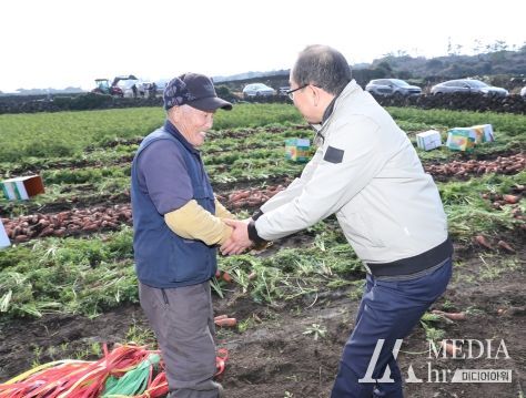미디어아워 임다연 기자 | 강병삼 제주시장은 12월 27일, 본격적인 당근 출하기를 맞아 당근 수확 현장과 구좌농협 유통센터를 방문해 올해산 당근 출하 상황을 살펴보고 농가들의 애로사항을 청취했다.