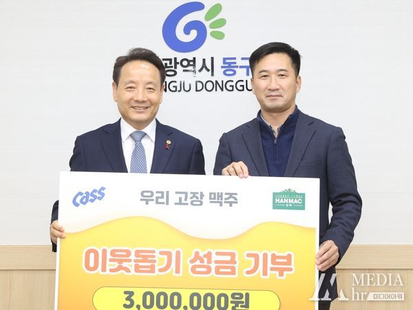 미디어아워 임다연 기자 | 광주 동구는 오비맥주 광주지점에서 돌봄 이웃의 겨울철 난방비 지원을 위해 후원금 3백만 원을 기탁했다고 28일 밝혔다.