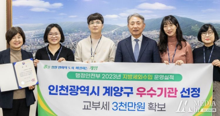 미디어아워 임다연 기자 | 인천시 계양구는 행정안전부 주관 ‘2023년 지방세외수입 운영실적 분석․진단 평가’에서 우수 기관으로 선정돼 행정안전부 기관 표창과 함께 재정 인센티브로 교부세 3천만 원을 확보했다.