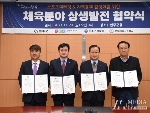 29일 완주군은 전라북도체육회, 완주군체육회, 전북체육고등학교와 스포츠마케팅을 통한 지역경제 활성화를 위한 상생발전 업무협약을 체결했다.