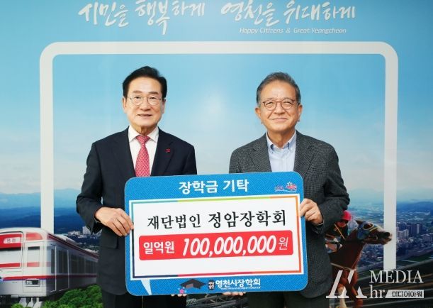 미디어아워 임다연 기자 | 재)정암장학회에서 3일 1억 원의 장학금을 (재)영천시장학회에 2024년 새해 처음으로 기탁했다.