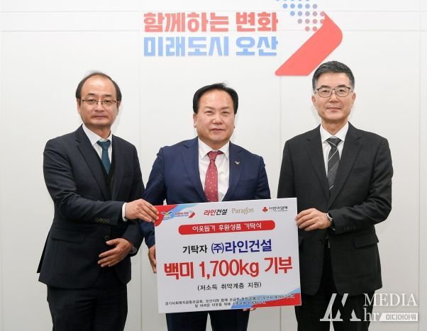 미디어아워 임다연 기자 | ㈜라인건설이 오산시에 백미 1천700kg를 기탁했다.