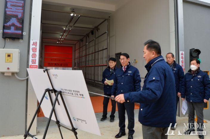 지난 5일 이용록 홍성군수는 갑진년 새해를 맞아 광천읍 운용리에 신축한 거점세척소독시설을 방문해 시설 운영 상황을 보고 받고 전국 최초로 소독필증 핸드폰 서비스 발급에 대해 점검하는 시간을 가졌다.