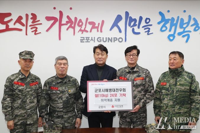 미디어아워 임다연 기자 | 군포시해병대전우회는 5일 새해를 맞아 소외된 이웃을 위해 쌀 10kg 24포를 기탁했다.