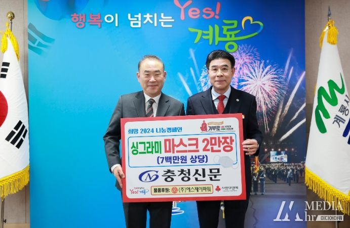 미디어아워 임다연 기자 | 계룡시는 16일 (주)에스제이파워로부터 마스크 2만장을 기탁받았다고 밝혔다.
