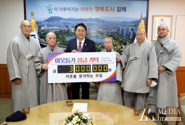 미디어아워 임다연 기자 | 김해시는 이웃을 생각하는 모임(회장 혜진 스님)에서 이웃돕기 성금 300만원을 기탁했다.