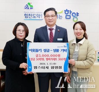 미디어아워 임다연 기자 | 새해를 맞아 함양군 어려운 이웃을 위한 나눔이 이어지고 있는 가운데 17일 함양읍 맘스터치에서 군청을 방문해 성금 50만 원과 햄버거 세트 360개(250만 원 상당)를 성품으로 기탁했다.