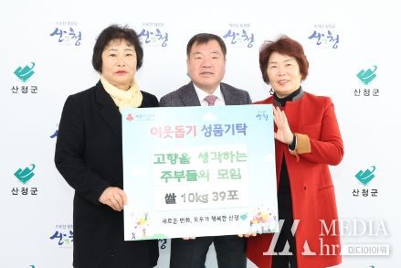 미디어아워 임다연 기자 | 산청군이 고향을 생각하는 주부들의 모임(회장 이명자)이 사랑의 쌀(10㎏·39포, 100만원 상당)을 기탁했다고 26일 밝혔다.