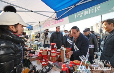 전북특별자치도 심 민 임실군수가 설 명절을 앞두고 서울 소비자들을 대상으로 치즈 등 지역 농특산물 홍보마케팅에 직접 참여, 판매하고 나서 눈길을 끌었다.