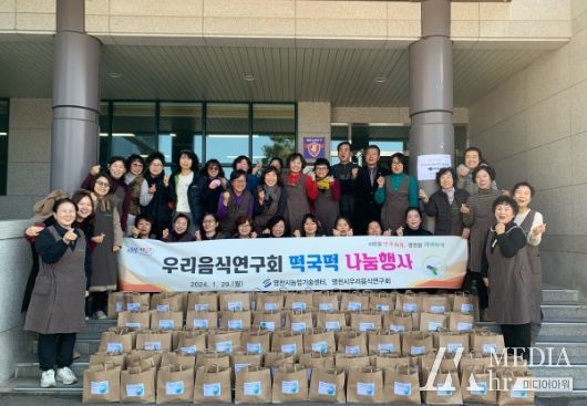 미디어아워 임다연 기자 | 영천시우리음식연구회(회장 이영애)는 29일 농업기술센터에서 회원 30여 명이 참여한 ‘이웃사랑 떡국떡 나눔 봉사’를 실시했다.