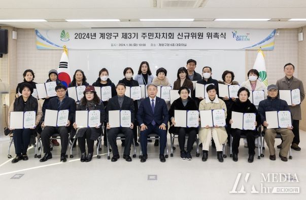 미디어아워 임다연 기자 | 인천광역시 계양구가 지난 30일 구청 대회의실에서 ‘계양구 제3기 주민자치회 신규위원 위촉식’을 개최하고 새로운 주민자치의 시작을 알렸다. 이날 위촉식에는 총 47명의 신규위원이 참석해 자리를 빛냈다.