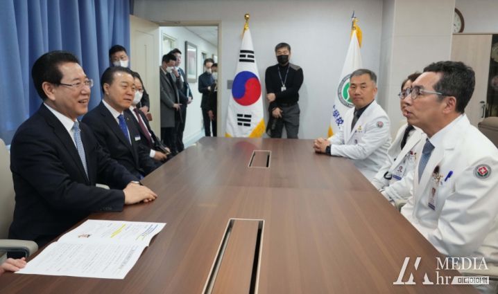 미디어아워 김지나 기자 | 김영록 전라남도지사는 20일 화순전남대병원과 전남대병원을 잇따라 방문해 병원장들과 간담회를 갖고 비상진료체계 유지에 감사를 표하고, 병원 측의 의료 분야 연구개발(R&D) 사업 협력을 약속했다.