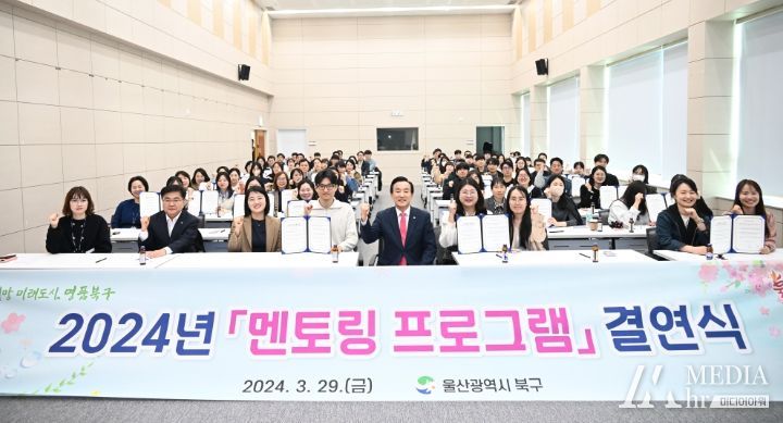 미디어아워 임다연 기자 | 울산 북구는 29일 평생학습관에서 신규공무원과 선배공무원의 멘토링 프로그램 멘티-멘토 결연식을 가졌다.