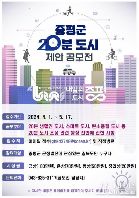 미디어아워 임다연 기자 | 충북 증평군이 지역주민을 대상으로 20분 도시 제안 공모전을 개최한다.