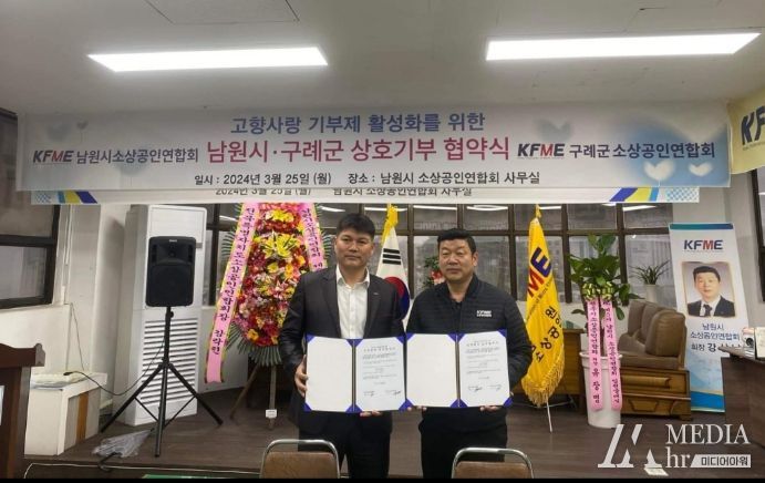 미디어아워 임다연 기자 | 전남 구례군과 전북 남원시의 소상공인연합회 회원들이 고향사랑기부제 활성화와 지역 상생협력을 위해 상호기부에 나섰다.