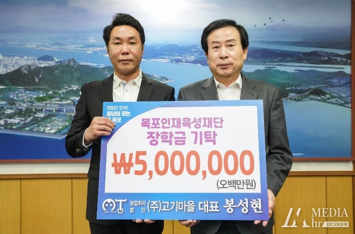 미디어아워 임다연 기자 | 농업회사법인 ㈜고기마을(대표 봉성현)이 지난 2일 목포인재육성재단에 우수 인재 양성을 위한 장학기금 500만원을 기탁했다.