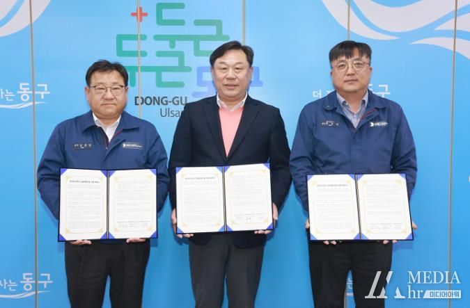 미디어아워 임다연 기자 | 울산 동구는 4월 8일 오후 2시 구청장실에서 김종훈 동구청장, 김동일 HD현대중공업(주) 전무, 김창환 HD현대미포(주) 상무 등 관계자들이 참석한 가운데 외국인노동자 공공체육시설 이용 및 사용료 감면 협약을 체결하였다.