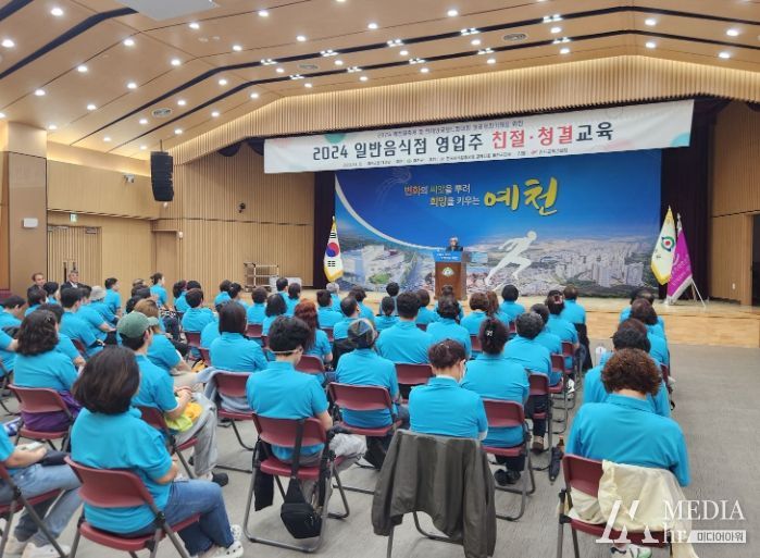미디어아워 임다연 기자 | 예천군은 15일 오후 군청 대강당에서 일반음식점 영업주 100명을 대상으로 친절 ․ 청결 교육을 실시했다.