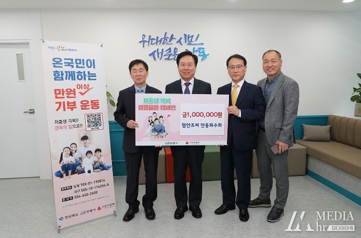 미디어아워 임다연 기자 | 함안조씨 안동화수회 회원 일동은 ‘저출생 극복 성금모금 캠페인’에 동참하고자 저출생 극복 성금 1백만 원을 23일 안동시에 전달했다.