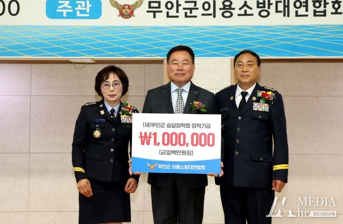 미디어아워 임다연 기자 | 전남 무안군은 지난 24일 의용소방대 무안군연합회(회장 천덕연), 무안군여성의용소방대연합회(회장 김정애)에서 지역인재 양성에 써달라며 (재)무안군승달장학회에 장학금 100만원을 기탁했다고 밝혔다.