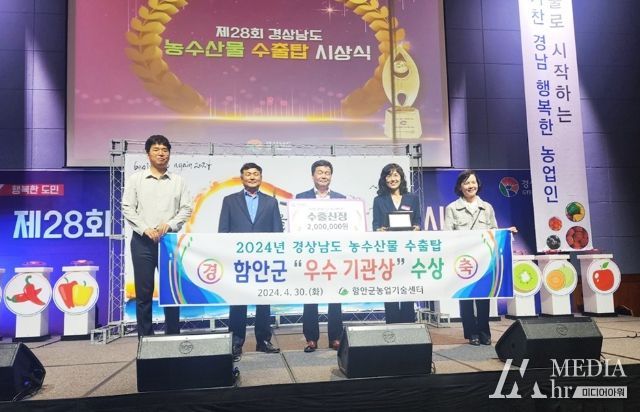 미디어아워 임다연 기자 | 함안군은 30일 창원컨벤션센터에서 열린 경남도 주관 제28회 경상남도 농수산물 수출탑 시상식에서 우수기관 수출 신장상을 수상했다.